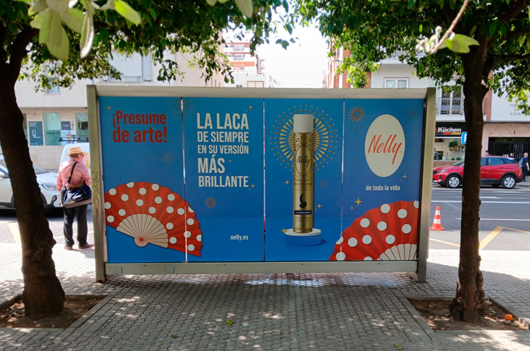 🚇 Estamos en la Feria de Abril de #Sevilla publicitando nuestra #LacaGold en las calles de la capital hispalense. La Laca Gold es una nueva versión de nuestra icónica laca #Nelly, !juntas no hay peinado que se les resista!